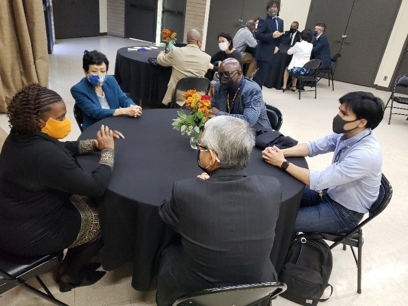 2021年11月9日、武藤総領事夫妻は、Japan & Black LA Initiativeの一環として、日系人コミュニティの代表者や当地ユナイテッド・メソジスト教会のアフリカ系聖職者とともに、カリフォルニア・アフリカ系米国人博物館を訪問しました。一行は、キャメロン・ショー館長の案内により館内を見学した後、ロヨラ・メリーマウント大学のカーティス・タカダ・ルークス博士の進行のもと、ロサンゼルスの日系コミュニティとアフリカ系コミュニティの歴史についてグループディスカッションを行いました。