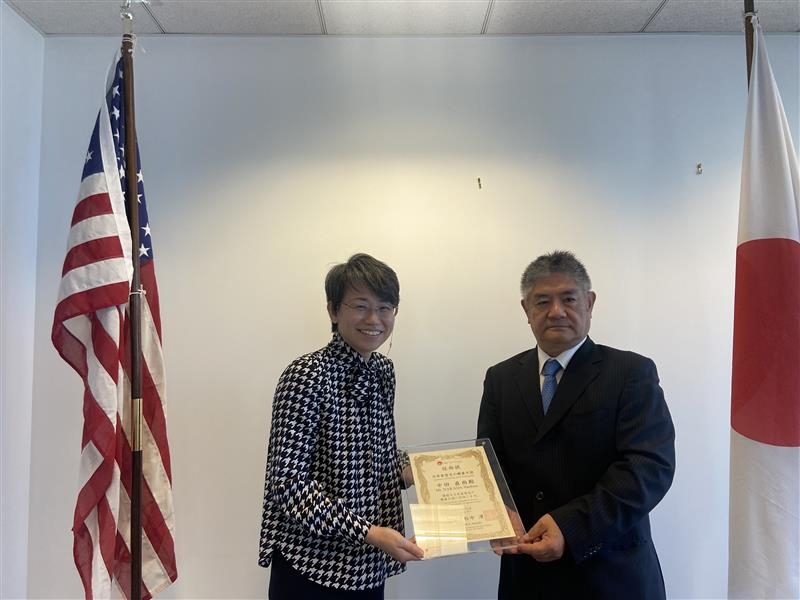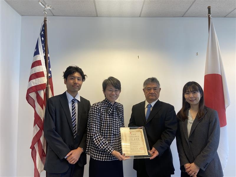 米国輸出支援プラットフォーム(ロサンゼルス事務局)より推薦した、上地勝也(うえち かつや)氏及び中田直尚(なかだ なおひさ)氏の2名につきましても、この度「日本食普及の親善大使」に任命され、神谷首席領事より任命状の授与を行いました。