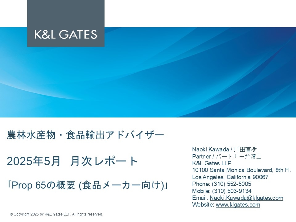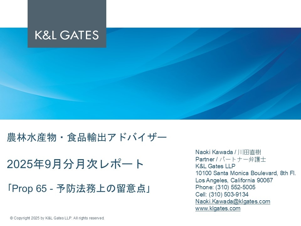 | 2025年9月 「Prop 65・予防法務上の留意点」 |